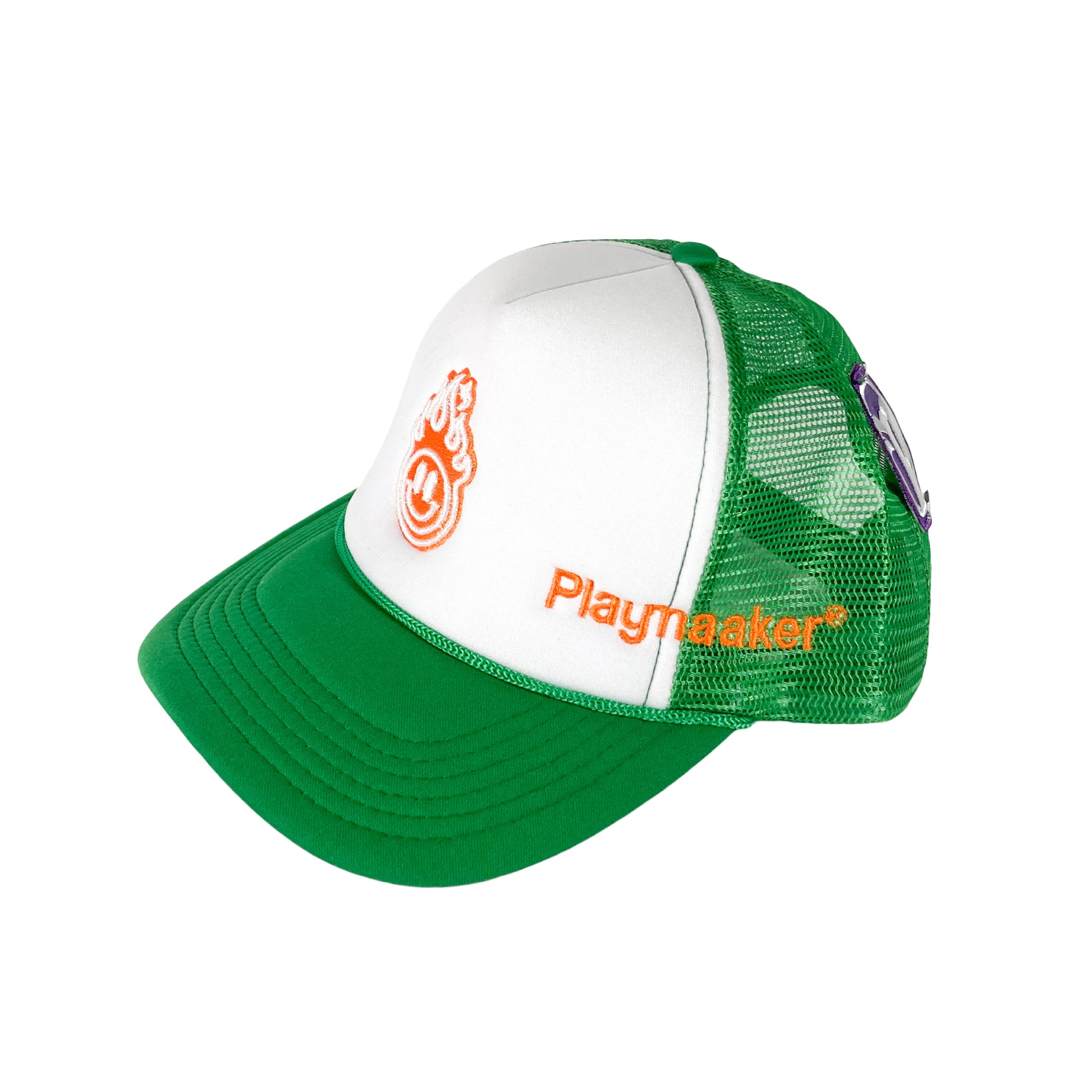 - Playmaaker wordmark logo embroidered right side in orange thread
