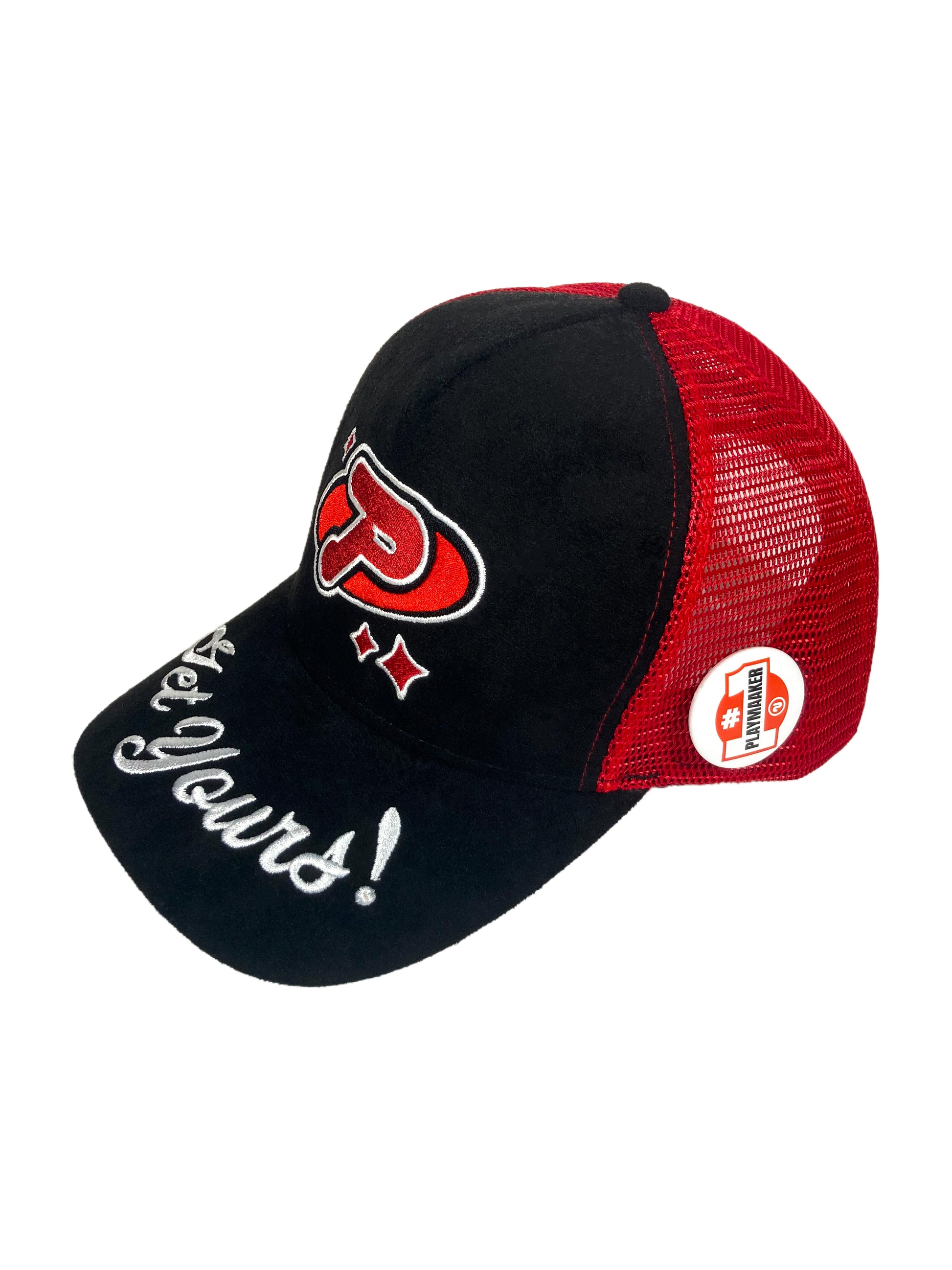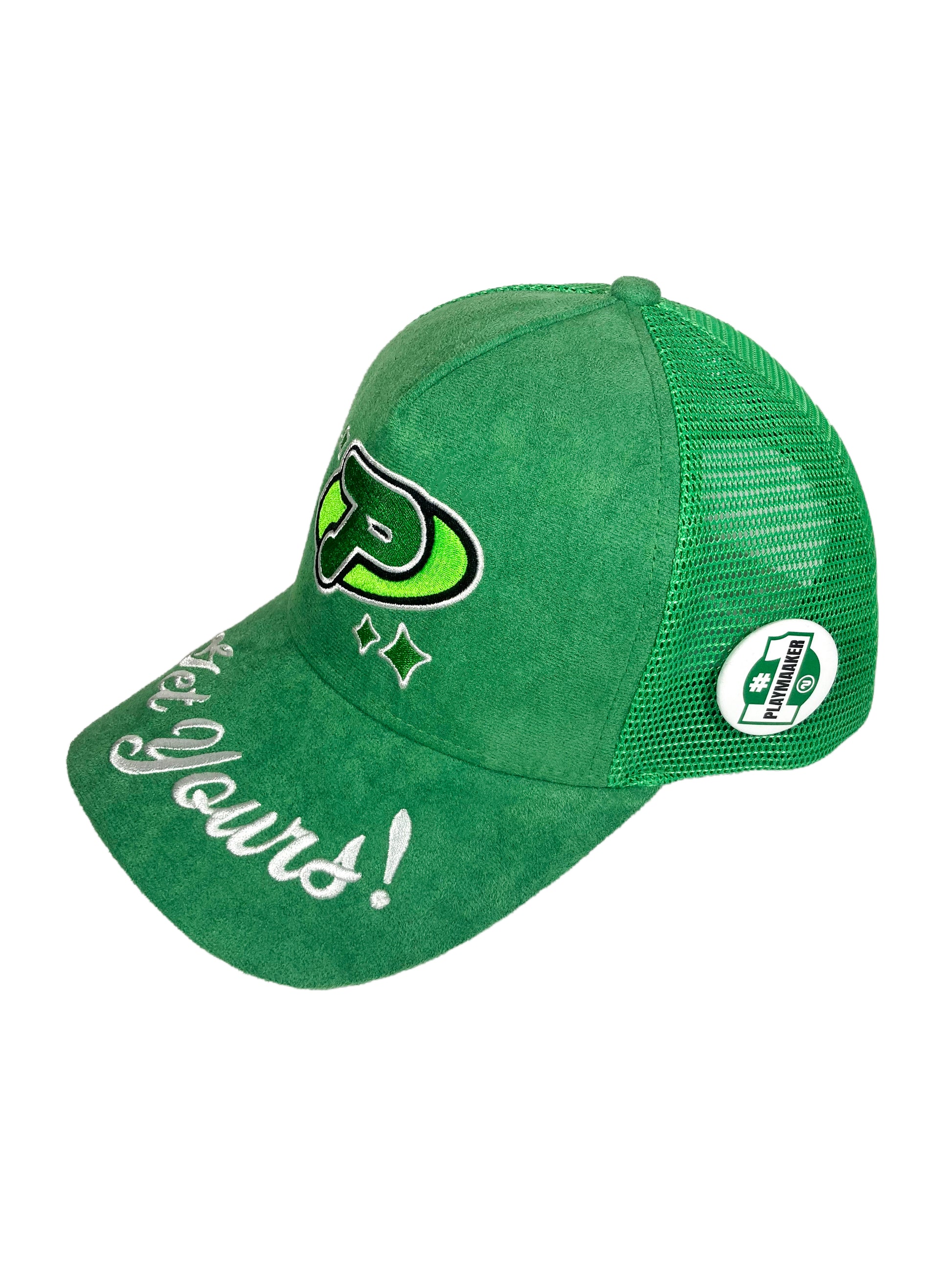 - Each hat comes with a 1.5" flavor-specific "#1 Playmaaker™" button to be placed/used to one's preference